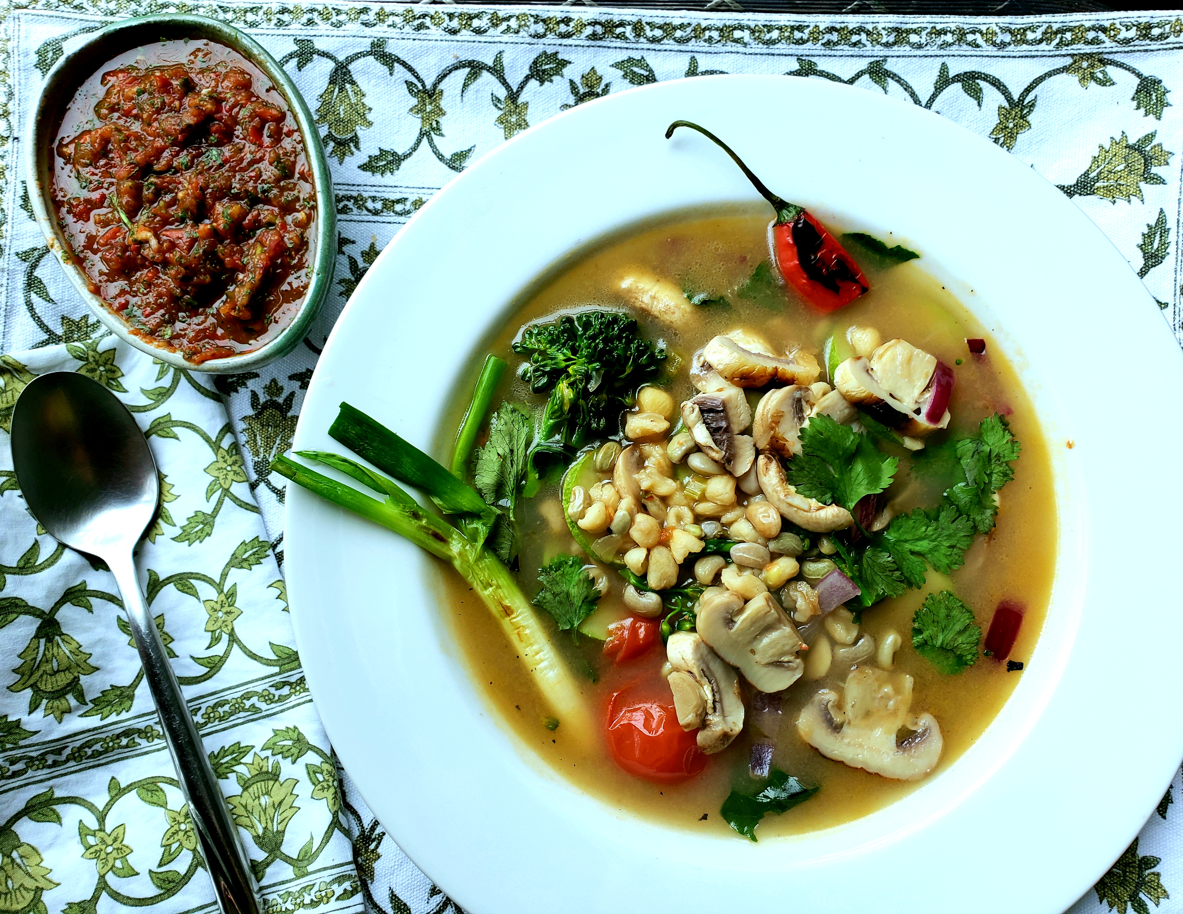 Almost a thirty-year habit of literary and not visual entertainment is hard to break, but I have an even heftier one that already occupies more time than it should. Between the cast iron, my baking stone, and the molcajete, the kitchen will unfortunately always be the heaviest part of my world, but the old-school choices have proven to be some of the most rewarding during this period of isolation, whether lightly roasting seeds for a salad, toasting spices before crushing them into a masala, grilling vegetables, or slowly melting them into soups.